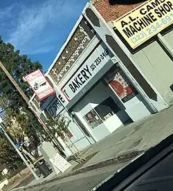 Located on the corner of 27th Street and Central Ave at 2700 Central Ave is 27th Street Bakery, now famous for its sweet potato pie.[16] The bakery was initially a restaurant that was established in the 1930s by Harry Patterson and his wife.[17] The couple catered to the African-American migrants from the Southern states who settled on and near Central Avenue.[16] In 1956, the owners decided to turn it into a bakery. The 27th Street Bakery is one of the few remaining African-American owned businesses on Central Ave.[16] The bakery has been in the same family for three generations and is currently owned by Jeanette Pickens, the granddaughter of Harry Patterson, the founder of the bakery.[18] 27th Street Bakery is the largest manufacturer of sweet potato pies on the West Coast of the United States.[16] You can now find their pies in retail stores such Ralphs, Albertsons, 7-Eleven, KFC and Louisiana Famous Fried Chicken.[17] The bakery suffered greatly after the 1992 LA Riots due to the extreme damage done to the neighborhood. Because clientele could not access the bakery for about two weeks, business temporarily decreased.[18]