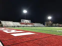 The stadium received a complete overhaul renovation in 2007. The new stadium includes permanent seating for 6,500 spectators and FieldTurf for its playing surface. Also included in the renovation was a state-of-the-art weight room, a home locker room equipped with 3 flat-screen TVs, coach's offices, and a team meeting room all located under the home side bleachers. It was constructed on the site of the existing complex and includes a full press box with hospitality suites that accommodates 120 people. A 450-seat stadium club section with chair-back seats is located at midfield on the home side. Construction began in the spring of 2007 and was complete in time for the 2007 homecoming game.