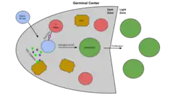 - ^ a b Allen, Christopher D. C.; Okada, Takaharu; Cyster, Jason G. (2007-08-24). "Germinal-Center Organization and Cellular Dynamics". Immunity. 27 (2): 190–202. doi:10.1016/j.immuni.2007.07.009. ISSN 1074-7613. PMC 2242846. PMID 17723214.