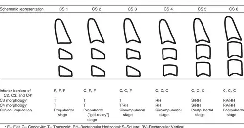Hassel & Farman (1995)[13] developed an index based on the second, third, and fourth cervical vertebrae (C2, C3, C4) and proved that atlas maturation was highly correlated with skeletal maturation of the hand-wrist. Several smartphone applications have been developed to facilitate the use of vertebral methods such as Easy Age.