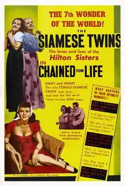 Chained for Life is a 1952 exploitation film featuring the famous conjoined ("Siamese") Hilton Twins, Daisy and Violet.[1][2]