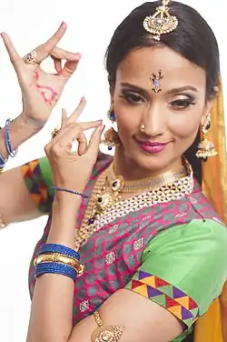 Chains is a solo Bharatanatyam Dance Theater production choreographed, directed and performed by Savitha Sastry. It is based on a trilogy of short stories written by her husband AK Srikanth, who is also the producer of the show. The soundtrack was scored by the Chennai-based music composer Rajkumar Bharathi,[1] the great grandson of veteran freedom fighter and poet Subramania Bharathi. Unlike Savitha’s other productions, Chains is not a work of fiction but is entirely based on true lives. The production premiered at Mumbai’s NCPA Auditorium on 31 January 2015, and is highly acclaimed for its nuanced delivery.[2]
