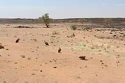 Occasionally, rain falls as a heavy downpour, and the water runs off through the hard desert surface and pools at surface depressions. In years of exceptional rainfall, a temporary lake is formed that can last several months.[1] This happened during 1978, for example, when a temporary lake of 50 centimetres or 1 foot 8 inches in depth was formed long enough for waterfowl to make use of it.[1]