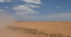 The Chalbi desert sustains high winds. In fact, the area has some of the strongest and most sustained wind systems of the world. The area sustains for over 50 days per years wind speeds of over 50 kilometres per hour (14 m/s; 31 mph; 27 kn).[10] Sandstorms are a common feature of the region.