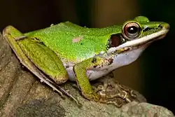 - ^ a b Oliver, Lauren A.; Prendini, Elizabeth; Kraus, Fred & Raxworthy, Christopher J. (2015). "Systematics and biogeography of the Hylarana frog (Anura: Ranidae) radiation across tropical Australasia, Southeast Asia, and Africa". Molecular Phylogenetics and Evolution. 90: 176–192. doi:10.1016/j.ympev.2015.05.001. PMID 25987527.