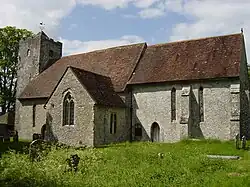 The village pub, The Red Lion, is believed to be the oldest in Hampshire, dating from the 16th century, though possibly earlier.[3] The Church of England Parish Church of St. Michael and All Angels has a thirteenth-century chancel;[4] the registers include burials in woollen cloth from 1678 to 1746. Clanfield and Chalton parishes were amalgamated 1932. Chalton was listed as part of the 'Hundred of Finchdean' in the Domesday Book.