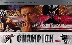 Champion is a 2000 Indian Hindi-language action film directed by Padam Kumar, starring Sunny Deol, Manisha Koirala and Rahul Dev. The rights to this film are owned by Red Chillies Entertainment.[2][3][4] The film featured Vishal–Shekhar's first composition together, who composed two tracks on the album including the title track "Aisa Champion Kahan".