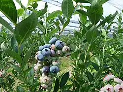The Chandler blueberry, also known as Vaccinium corymbosum 'Chandler' (blueberry), is a cultivar of blueberry which produces large berries.[1] It was released in 1995 and was described by the United States Department of Agriculture as "a fresh market, local sales cultivar."[2][3] Chandler blueberries come in relatively late in the harvest season.[4] As the berries are quite large and slow to ripen, they are best picked by hand rather than by machine.[5]