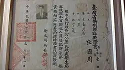 Chang Kuo Chou's calligraphy works won many awards including Japanese Calligraphy and Taiwanese Banner (參加「日本書道作振會」之兩件作品分別為楷書〈永成家之光〉條幅及行書〈趙孟頫題董元溪岸圖〉條幅 皆獲得「入選」).