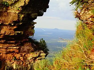 The geographical center of South America, formerly considered to be in the city of Cuiabá where it is marked by a white marble obelisk, is in fact located in the park near the town of Chapado dos Guimarães at the "Mirante de Geodésia", a scenic lookout point.[5]