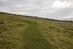 Walking is a popular past-time through the dale; in 1887 two Giggleswick schoolmasters inadvertently created the Three Peaks Challenge by climbing Ingleborough and seeing the good weather, descended through Chapel-le-Dale to Whernside, and later Pen-y-ghent.[29] Wainwright's long-distance walk, a Pennine Journey, wends its way through the dale going up both valley sides.[30] The Dales High Way crosses the valley from Ingleborough over to Dentdale.[31] The Dales High Way at the head of the dale follows the route of the Craven Way (an ancient packhorse route) over Little Deep Dale and past Blea Moor.[32][33]