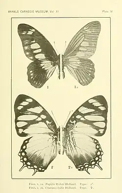 1. ^ Holland, W.J. 1917. Two new West African Rhopalocera. Annales of the Carnegie Museum 11: 14-18.Public Domain This article incorporates text from this source, which is in the public domain.