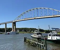 The town was separated into north and south sections when the C&D Canal was built through the middle of the town. The two were connected by a drawbridge until 1942 when that was destroyed by a freighter that struck it. The current bridge opened in 1949.