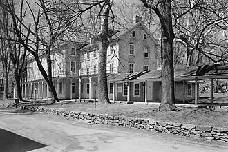 Chester Springs Historic District, also known as The Old Art School, Orphan's School, Yellow Springs Spa, and Good News Buildings, is a national historic district located in West Pikeland Township, Chester County, Pennsylvania. The district includes 7 contributing buildings, 1 contributing site, and 1 contributing structure in the spa community of Chester Springs. The district includes the old hotel and inn, two large residences, a bath house at one end of the springs, and a studio. It also includes a wooden summer house that enclosed the iron springs. The property was the site of a hospital commissioned by the Continental Congress and built in 1777. The three-story, 106 feet by 36 feet wide building burned in 1902, was reconstructed, then burned again in the 1960s. The Yellow Springs resort operated in the early-mid 19th century and many of the buildings date from that period.[2]