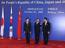 On October 10, 2009, Chinese Premier Wen Jiabao, Japanese Prime Minister Yukio Hatoyama, and South Korean President Lee Myung-bak attended the 2nd trilateral summit