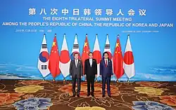 22. ^ "韩中日领导人纪念三国合作20周年". 韩联社(韩国联合通讯社) (in Chinese). 24 December 2019. Retrieved 27 May 2024.