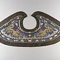 The design of wrap-style closure or neckline, known as jiaoling (Chinese: 交領; lit. 'intersecting collar') in China, in European garments was the results of the heavy influences of Orientalism which was popular in the 19th century.[43][note 2]