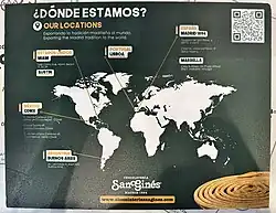 World map of San Ginés branches as displayed in Miami Beach branch January 2025. Mexico branches are no longer in operation.