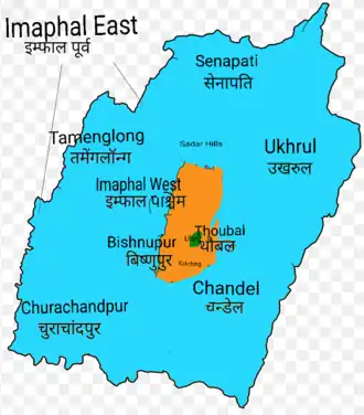 - ^ The hill districts in 2011 were Senapati, Tamenglong, Churachandpur, Ukhrul and Chandel.