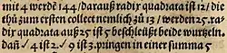 1. ^ Rudolff, Christoff (1525). Behend vnnd Hübsch Rechnung durch die kunstreichen regeln Algebra, so gemeimblich die Coß genannt werden ... (in German). Cephaleus.