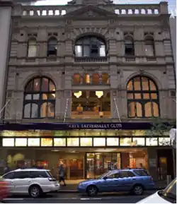 The City Tattersalls Club is a social club in Sydney. The club was formed in 1895 by a group of bookmakers disgruntled with a judge's decision on a race at Kensington, New South Wales. The club named itself after the Tattersalls Club, Sydney, which was founded in 1858 and represented the horse racing establishment.[1] The club is located in the heart of the central business district at Pitt Street between Market and Park Streets.