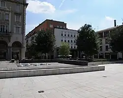 Remains of these fortifications and the Castello dei Cotta were found during two excavation campaigns from 1951 to 1954 and in 1955 between the under-construction Galleria di Legnano and an adjacent area slightly further north towards Corso Garibaldi.[15] In particular, regarding the wall, traces of its southern part were found, while no remains of the northern part, which must have been north of the settlement, at the height of the current historic headquarters of the Banca di Legnano and corresponding to the ancient Church of Sant'Agnese, now disappeared, have been discovered.[15]