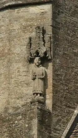 Medieval statue of St Stephen on the church tower