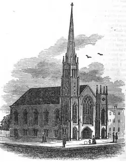 As the area around the church was again becoming more commercial, the second church building was sold in 1868.[1]: 27–29 The Rowe Street building was demolished and the materials were used to build a chapel for the Episcopal Church of the Messiah, Auburndale in 1880.[6]