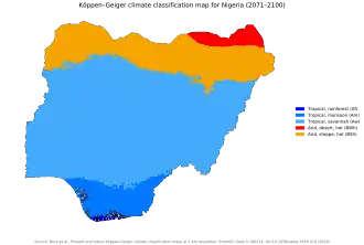 - ^ Shiru, Mohammed; Shahid, Shamsuddin; Alias, Noraliani; Chung, Eun-Sung (19 March 2018). "Trend Analysis of Droughts during Crop Growing Seasons of Nigeria". Sustainability. 10 (3): 871. Bibcode:2018Sust...10..871S. doi:10.3390/su10030871.