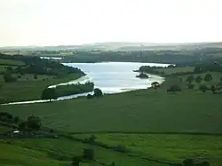Leaving Loch Thom at Cornalees, The Cut, with its footpath, runs westward and then turns northward as it follows the contour of Dunrod Hill which it follows round until running directly above the town of Greenock at Overton, having come a distance of 5+12 miles (9 km). It collects some of the water from streams that cross its path, and a series of sluice gates incorporate an ingenious automatic way of releasing surplus water.[7]