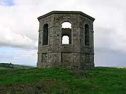 The small temple building or folly on the Kenmure Hill knoll to the northern end of Castle Semple loch is one of the few remains of the Castle Semple estate. Col. William MacDowell was responsible for the 'Temple' and also for building of Castle Semple House, which was destroyed by fire in 1935. All that remains of this 900-acre (360 ha) estate is the folly, a walled garden and a pair of gate arches.