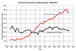 - ^ a b Annual coal production, US Energy Information Administration. Retrieved Apr. 2016.