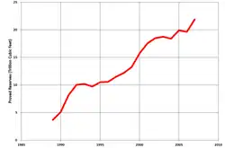 The EIA reports 2017 reserves at 11,878 billion cubic feet (BCF) or 11.878 trillion cubic feet,[3] which at a current market price of US $2.97 as of May 14, 2021, are worth approximately $36.2 Billion USD.[4]