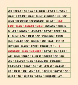 Name spellings are derived from the edited version of the text into Latin letters by Marita Akhøj Nielsen (2015) and runes are from the digitised manuscript Am 28 8vo at the University of Copenhagen. | ||||||||||||||||||||||||||||||||||||||||||||||||||||||||||||||||||||||||||||||||||||||||||||||||||||||||||||||||||||||||||||||||||||||||||||||||||||||||||||||||||||||||||||||||||||||||||||||||||||||||||||||||||||||||||||||||||||||||||||||||||||||||||||||||||||||||||||||||||||||||||||||||||||||||||||||||||||||||||||||||||||||||||||||||||||||||||||||||||||||||||||||||||||||||||||||||||||||||||||||||||||||||||||||||||||||||||||||||||||||||||||||||||||||||||||||||||||||||||||||||||||||||||||||||||||||||||||||||||||||||||||||||||||||||||||||||||||||||||||||||||||||||||||||||||||||||||||||||||||||||||||||||||||||||||||||||||||||||||||||||||||||||||||||||||||||||||||||||||||||||||||||||||||||||||||||||||||||||||||||||||||||||||||||||||||||||||||||||||||||||||||||||||||||||||||||||||||||||||||||||||||||||||||||||||||||||||||||||||||||||||||||||||||||||||||||||||||||||||||||||||||||||||||||||||||||||||