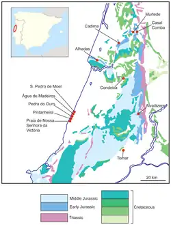 - ^ Lusa (2025-02-19). "Fóssil de dinossauro com mais de 190 milhões de anos descoberto na praia de Água de Madeiros". PÚBLICO (in Portuguese). Retrieved 2025-02-19.