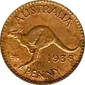 Portrait of King George VI. Designed by Thomas H. Paget. | Kangaroo facing left, "AUSTRALIA" above and "PENNY" below, date above denomination. Designed by George Kruger Gray. | 1938 | 1938–1952 | ||||||