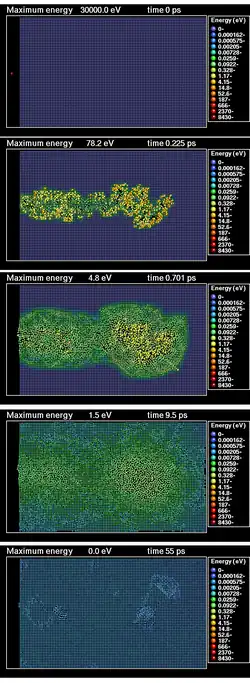 Computer simulation-based animations of collision cascades in the heat spike regime are available on YouTube.[23]