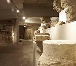 The praetorium of the CCAA was located in the ancient city directly on the eastern city wall, northeast of the forum district. It is the only administrative building of this type in the entire Roman Empire in which the name praetorium as such is preserved in an inscription.[4] The foundation walls can be viewed under the "Spanish Building" of the Cologne City Hall. Essentially, the building, which has seen repeated new construction and extensions throughout its history, can be differentiated into four different construction phases: