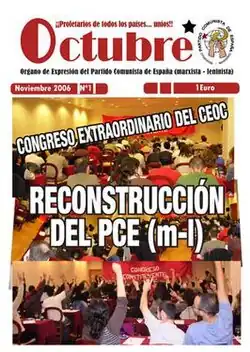 PCE (m–l) publishes Octubre every month and is an active member of the International Conference of Marxist–Leninist Parties and Organizations (Unity & Struggle).