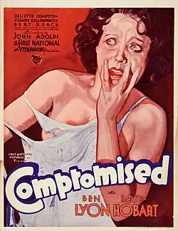Compromised (1931) is an all-talking pre-code drama film produced and released by First National Pictures, a subsidiary of Warner Bros., and directed by John G. Adolfi. The film stars Rose Hobart, Ben Lyon, and Claude Gillingwater. It was based on a play by Edith Fitzgerald.[1] This film is presumed lost.