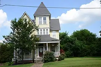 The Compton-Woods House is a historic house at 800 High St. in Little Rock, Arkansas. It is a 2+1⁄2-story wood-frame structure, with a cross-gable roof configuration, and wooden clapboard and shingle siding. It is a fine local example of late Queen Anne Victorian style, with a three-story square tower in the crook of an L, topped by a pyramidal roof. Decorative cut shingles adorn the upper floor. The interior features high quality period woodwork in mahogany, oak, and pine. Built in 1902, it is a surviving example of houses that were typically seen in its neighborhood, just south of the Arkansas State Capitol.[2]
