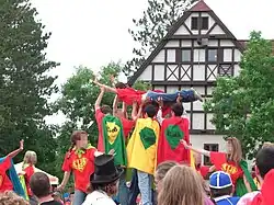 During each half of the summer, all the camps within driving distance travel to Waldsee, the German camp, for a day-long festival of cultures called International Day, or I-Day. The camps bring out their wares and each has a booth of ethnic food to share, and each camp prepares a short closing performance to share. Each year has a different theme. Additionally, campers in every village learn a choreographed dance to the year's "I-Day song" during the two weeks preceding I-Day. This is a song from a language not covered by the camps; everyone dances to it together during the festival. Due to the COVID-19 pandemic, International Day has been postponed until further notice.