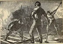 As the war continued, railroad operators attempted to acquire supplies from abroad due to the Confederacy's limited industrial base.[7] The supply problem became increasingly severe, particularly for engines and cars. Stressed by overuse, lacking materials for repairs, and losing skilled workers to conscription, rail operators predicted a breaking point as early as 1862.[8] Despite their efforts to seek assistance from the Confederate Congress throughout the war, the response was either indifferent or hostile.[7]