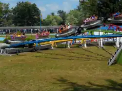 - 1997: Former owner Garry Harris went to prison for tax evasion.[13] The non-profit Trustees of Conneaut Lake Park group was established to take ownership of the park. Blue Streak was renovated and the park purchased four rides from the now-closed Old Indiana Fun Park: Super Round-Up, Dodg'ems, Sky Thriller, and Turbo. Turbo was never installed due to a dispute over ownership.[14] An 8-tub model of the Flying Scooters ride was also added.