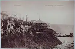 The second version of the Casino was commissioned and built by the City of Constanţa at a nearby location, opening its doors in 1893. The building featured a wooden structure and was situated near the current location of the Casino.[3] It housed a dance hall and several rooms, but only one terrace facing the sea. In May 1902, Captain Constantin Creangă petitioned the local mayor and city management to lease the building. Advertising himself as a chef, a skilled confectioner, and fluent in two commonly-spoken lingua franca of the time, he successfully secured the building's transfer to his care for 2,000 lei a year. The lease stipulated that he should "sell merchandise and products of only the finest and highest quality" and use "petroleum of the best quality on the property as to not produce any odor when burned" for lighting.