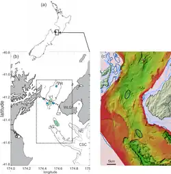 - ^ Bowman, M. J., A. C. Kibblewhite, R. Murtagh, S. M. Chiswell and B. G. Sanderson (1983) Circulation and mixing in greater Cook Strait, New Zealand. Oceanologica Acta 6(4): 383–391.