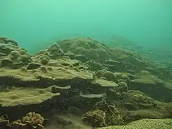 Roughly 1 km2 in size, Varadero boasts approximately 80% coral cover.[1] Reaching more than 3 meters in diameter, many of the massive colonies found in the reef of Varadero belong to the hermatypic coral genus Orbicella. This reef is estimated to contain over 30 scleractinian coral species.[1] To adjust to the low light levels resulting from the high turbidity, some corals have utilized a flattened, plate-like growth strategy to optimize light exposure for its photosynthetic algal endosymbionts of the genus Symbiodinium. With the rapid decline of coral reefs in the Caribbean, scientists are examining reefs such as Varader that are surviving in conditions previously thought to be inhospitable to corals to understand reef resilience. Furthermore, microbiome and physiological research of this reef indicate that Varadero is experiencing a slow decline and may be on the brink of dysbiosis.[5]