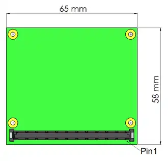 The specification defines a board size of 58 mm × 65 mm, slightly smaller than a credit card and small enough to allow a carrier board in standard PC/104-Plus format.[1][9]