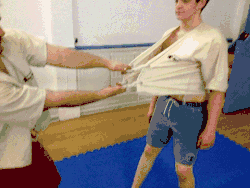- The thrower takes grip on the ropes of throwee's jacket.