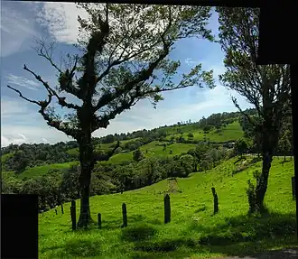 The Costa Rican seasonal moist forests ecoregion (WWF ID: NT0119) covers the Pacific Slope of the volcanic mountain range of northwestern Costa Rica and the extreme south of Nicaragua. The area has a distinct dry season during which the characteristic deciduous trees drop their leaves. The forests themselves have been highly degraded in the past by human conversion to agriculture and settlement. The Costa Rican capital city of San Jose is in the middle of this ecoregion.[1][2][3][4]